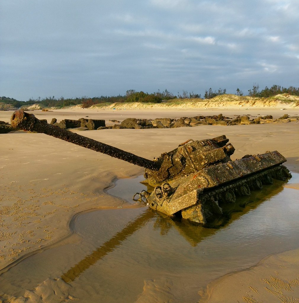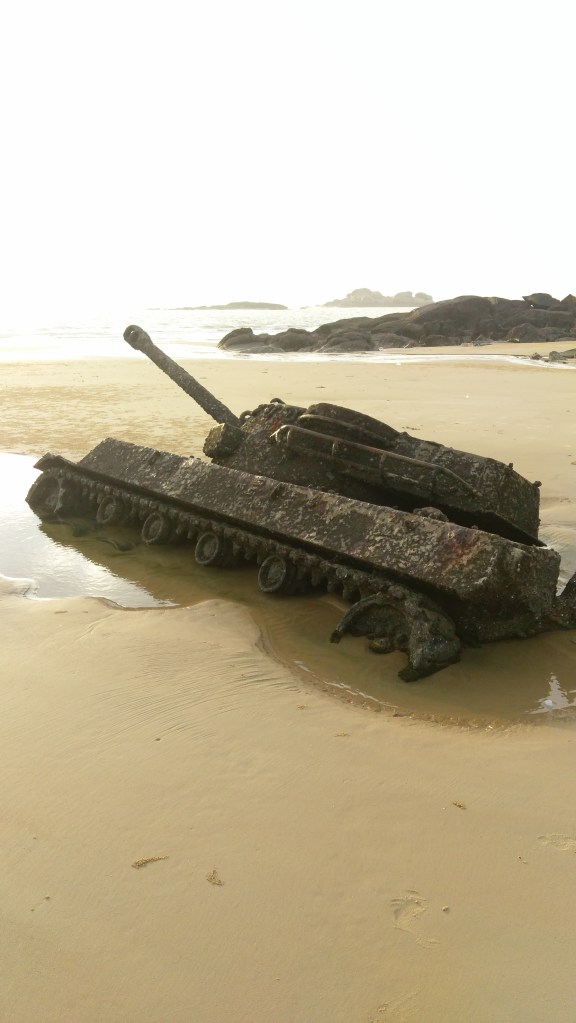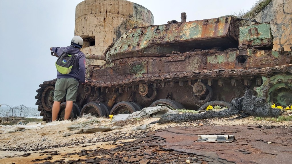 These tanks were sold to the Republic of China and used in the defense of Kinmen. I am not sure how this tank actually got stuck on the beach or when. It could have gotten stuck in the sand and left, or maybe used for a decoy. I’m not really sure how.