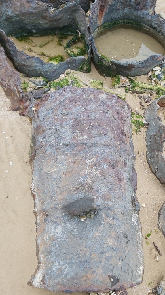 Also at the beach, there must have been a wharf or some kind of refueling station. There are old oil cans very close to the tank.