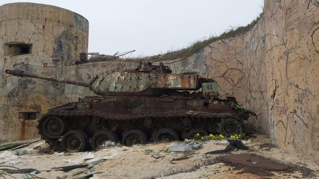 The beach fort is at Jimingshan 雞鳴山, although I am not sure if the tank is still there. It looks like the military is doing some work in this area as well.