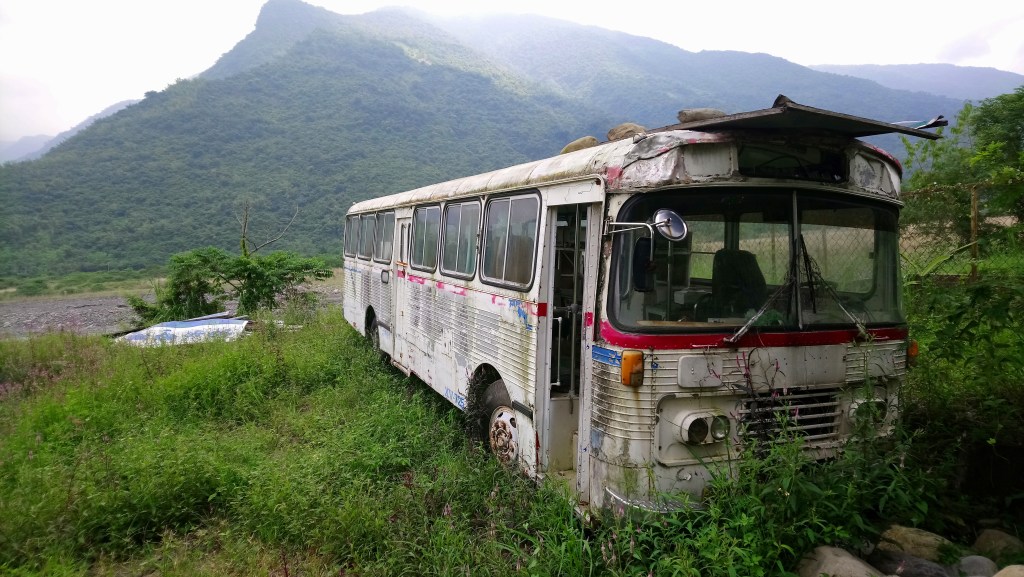Close by there is an old bus on the side of the road. And I was told that this was the style of bus that used to drive on the old road between Cishan and Liugui.