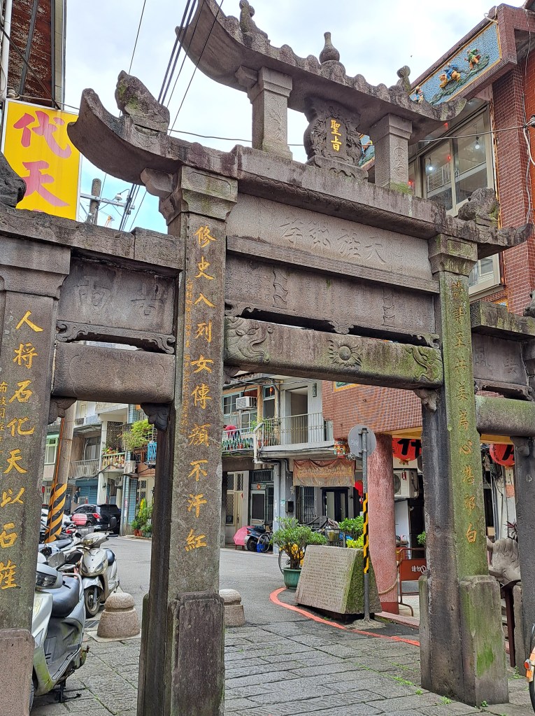 First up on our tour was Lady Zhou’s Memorial Gate 周氏節孝坊. Lady Zhou was born in Beitou in 1788 and died in 1846. She was widowed at a young age and was very filial to her parents-in-law. The gate was built in her honor in 1861 and underwent partial restoration in 1992. Since there aren’t many remnants of the Qing era in Taiwan, I’m constantly searching for items from that time.