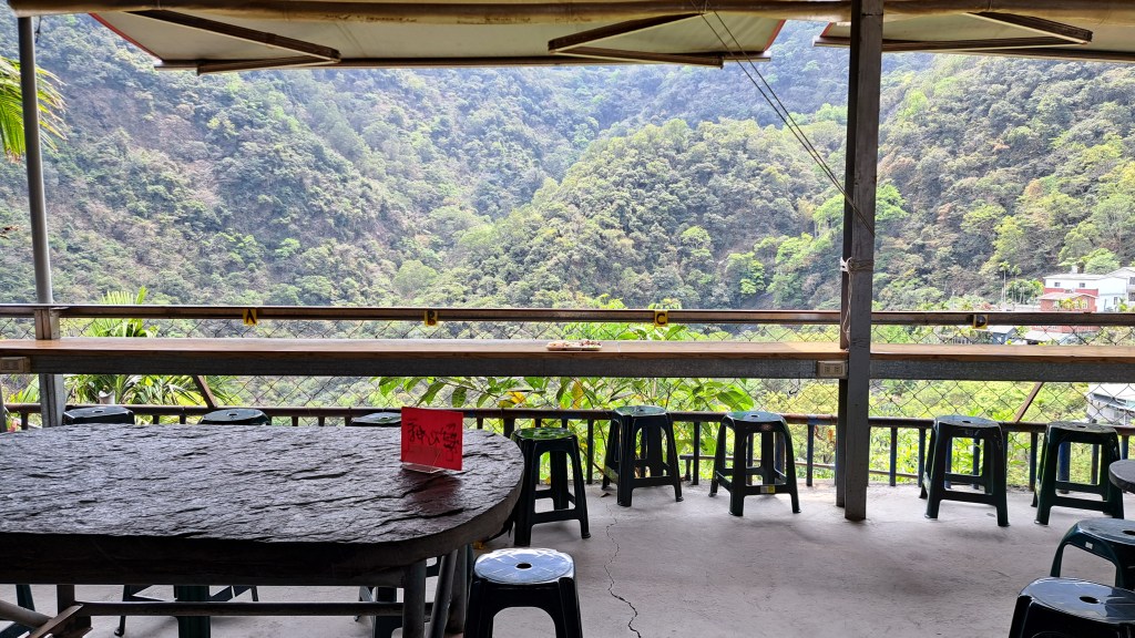 You reach the village of Wutai after passing through Shenshan. I usually get here by 11:30 or so…. So it’s time for lunch at one of my favourite restaurants in Taiwan, 霧頭山光華的店. I always eat here for the food and especially the view.