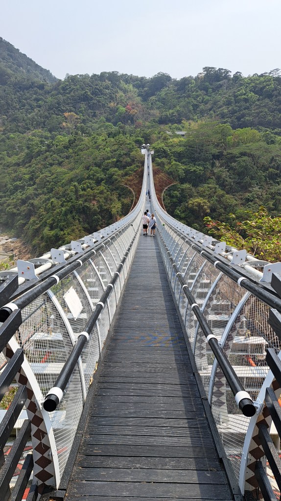 I also finally decided to check out the Shanchaun Glass Bridge (山川玻璃吊橋), or Qinata a kakiunangan a Tjekeza in Paiwan. It’s a hammock-style suspension bridge. It’s 262 meters long and 45 meters above the river. It was pretty cool. It was free.